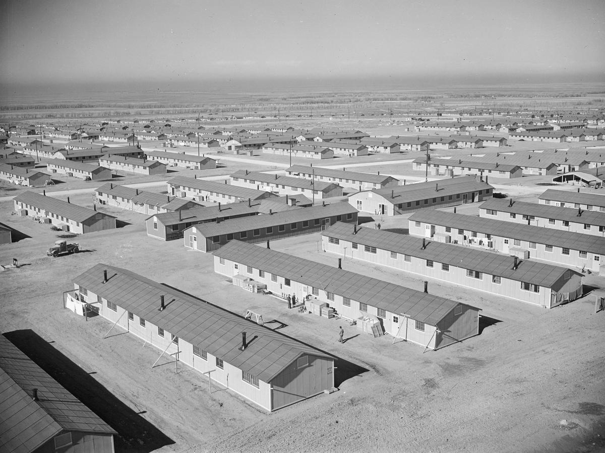 As they drove up over a hill, the camp came into full view: an expanse of wooden barracks with guard towers and barbed wire fences surrounding them. Beyond that, the land was flat and barren save for some sage brush.