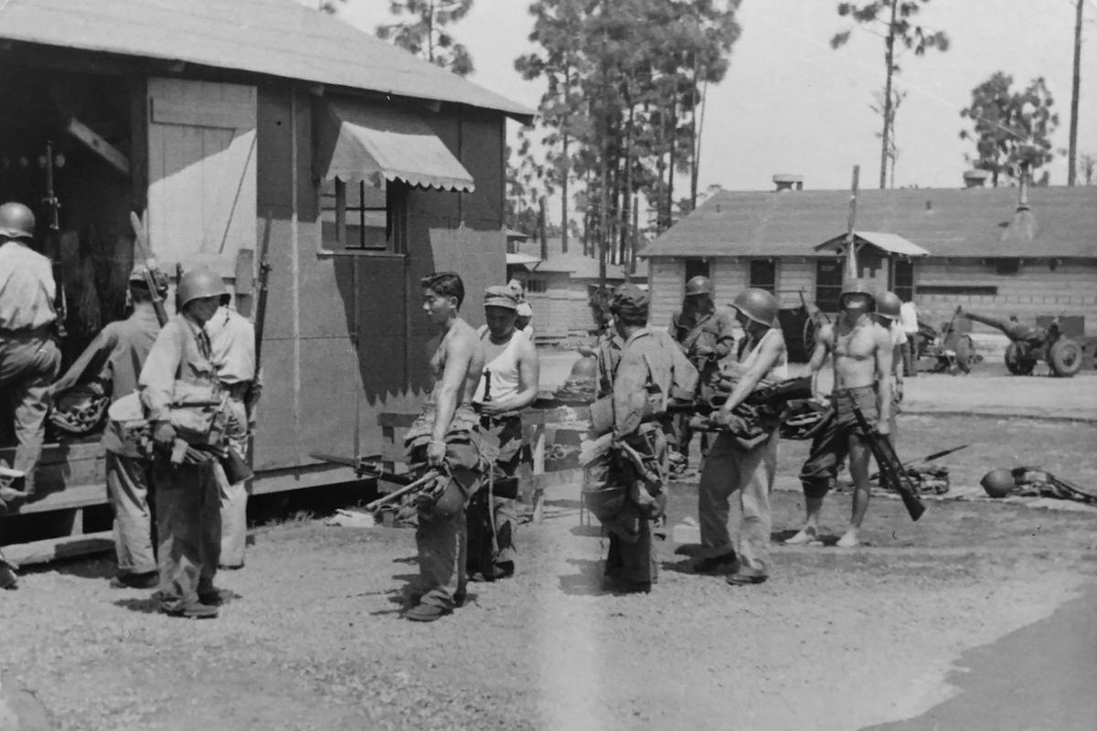 A year later, Min received a notice that he had been drafted into the U.S. army. He had just turned 18 and still hadn’t finished high school, so he petitioned — with success — to be allowed to graduate before entering the army. He eventually enlisted the following year and was sent to Camp Blanding, a military training base in northeastern Florida. There, he trained with other Japanese American men as replacements for the 442nd Regimental Combat Team (RCT) , a segregated, all-Japanese American unit that had spent the past two years fighting in Europe.